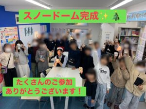 たくさんの小学生とお手伝いに 来てくれた中1たちのおかげで 大盛況となったクリスマスパーティー🎄100均の商品だけで作る 『スノードーム』で クリスマス気分を味わうことができました! 最後は完成したスノードームを持って はいチーズ!