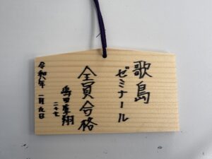 お守りを買い、絵馬も書き、受験生みんなの合格を祈願しました!
