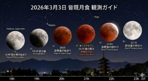 皆既月食とは、太陽・地球・月が一直線に並び、月が地球の影に完全に入り込む現象です。