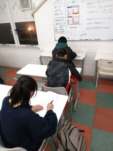 普段の授業とは違う形式やボリュームに、解き始めは少し不安そうな表情も見られましたが、それでも目の前の問題にじっくり向き合おうとする姿勢がそこにはありました。これからの成長を期待させてくれるスタートとなりました。