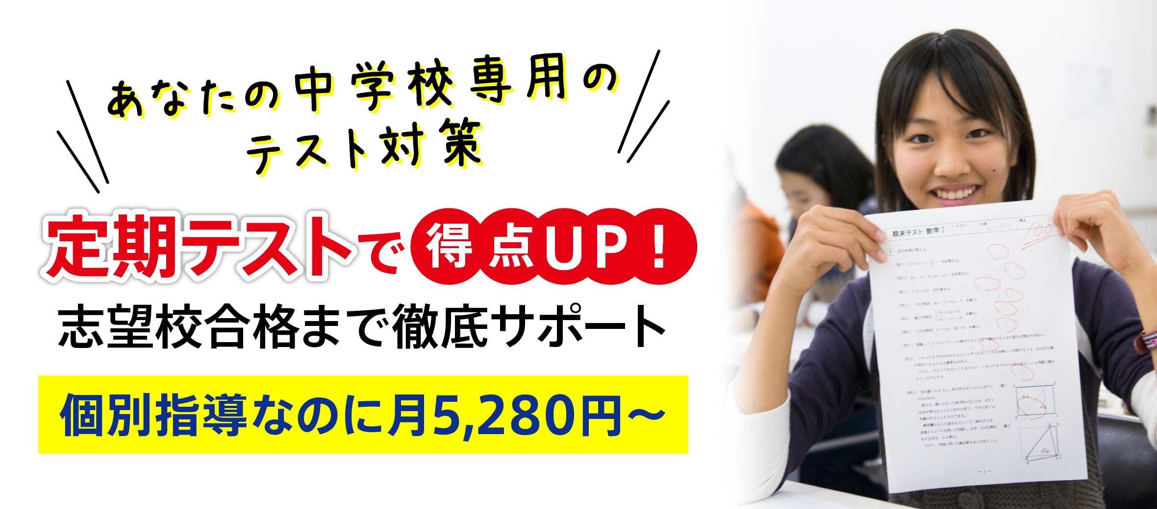志望校合格を勝ち取るには、入試本番だけでなく中学校の内申点が重要です。そして、内申点を決定する定期テストはまだ残っています。当塾では受験勉強とテスト対策を並行して実施しています。最後まで内申点アップをしっかり目指しましょう。