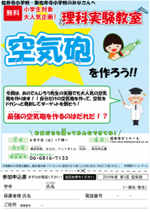 6月9日に開催します、理科実験教室についてお知らせします。
