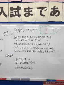 昨日1月14日時点でいよいよ私立専願入試まで7日となりました。