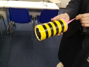 完成した空気砲にいろんなテープを巻いて、きれいにデコレーションしました!