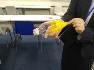 次にペットボトルを使って空気砲を作りました。