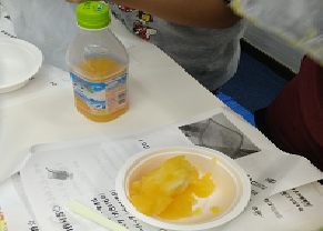今回はオリジナルシャーベットということで、小学生の子どもたちが好きな飲み物を持って来て作りました。