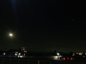 右上の方に見える赤っぽい星が火星です。一等星よりも明るくくっきりと見えていました!