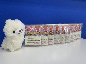 写真は入試壮行会で配布したカイロセットとお守りです!