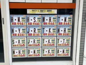 教室の外に結果の一部を張り出しているので、塾生の頑張りをぜひ見に来てください。