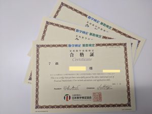 先日実施した数学検定・算数検定の結果が返ってきました。