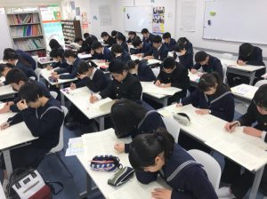 1月14日、成人の日、振り袖姿で歩く人を大勢見たこの日に、中学3年生は模擬試験を行いました。