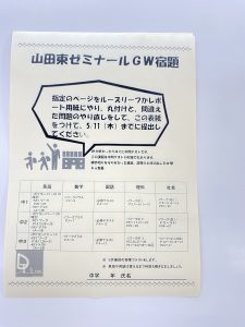 山田東ゼミナールではゴールデンウイーク期間中の課題を配付致します!
