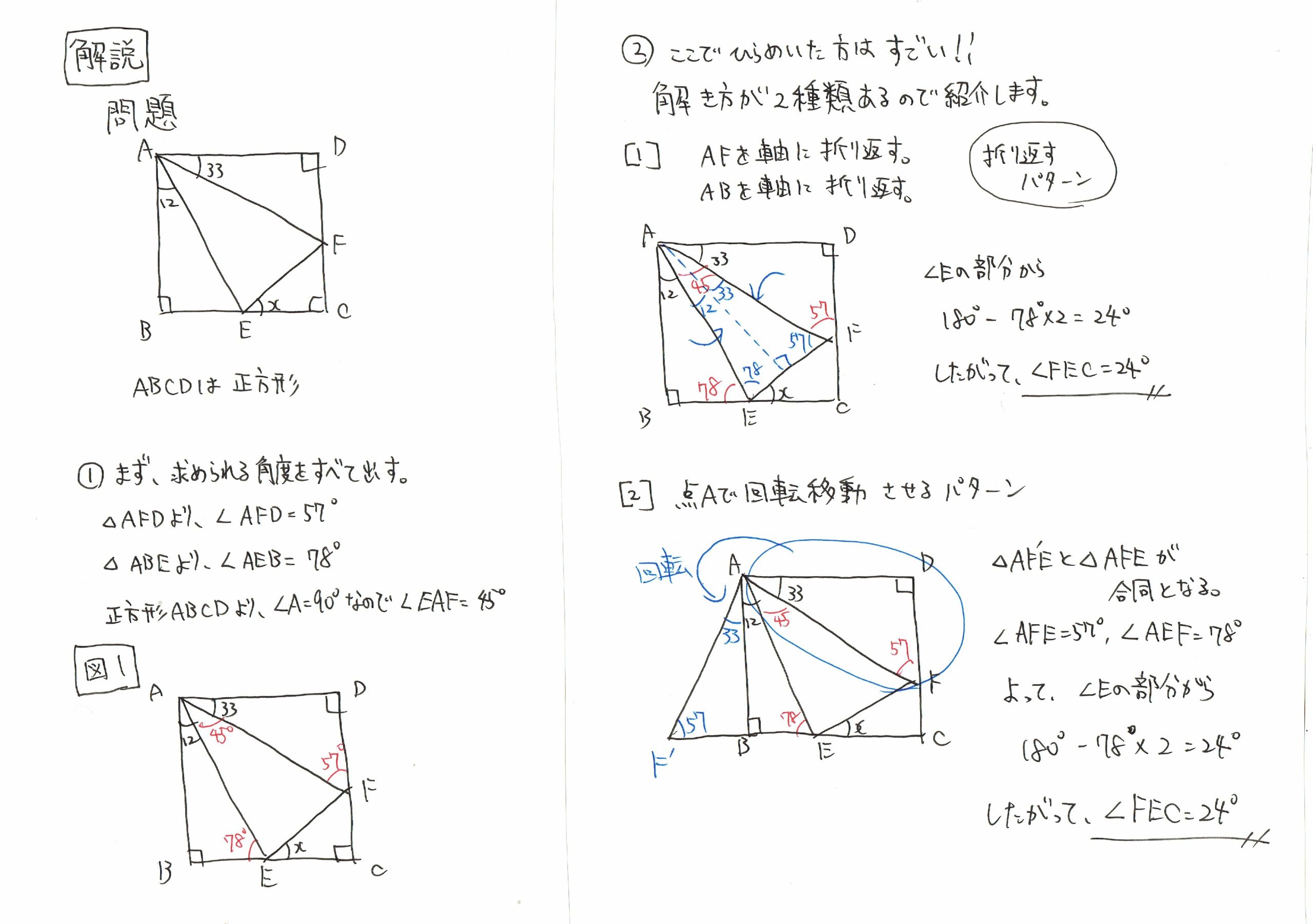 皆さんは解けましたか?先生も初めて見たときは、「簡単そうやん!と思って解いていくと案外難しいな」という感想でした。