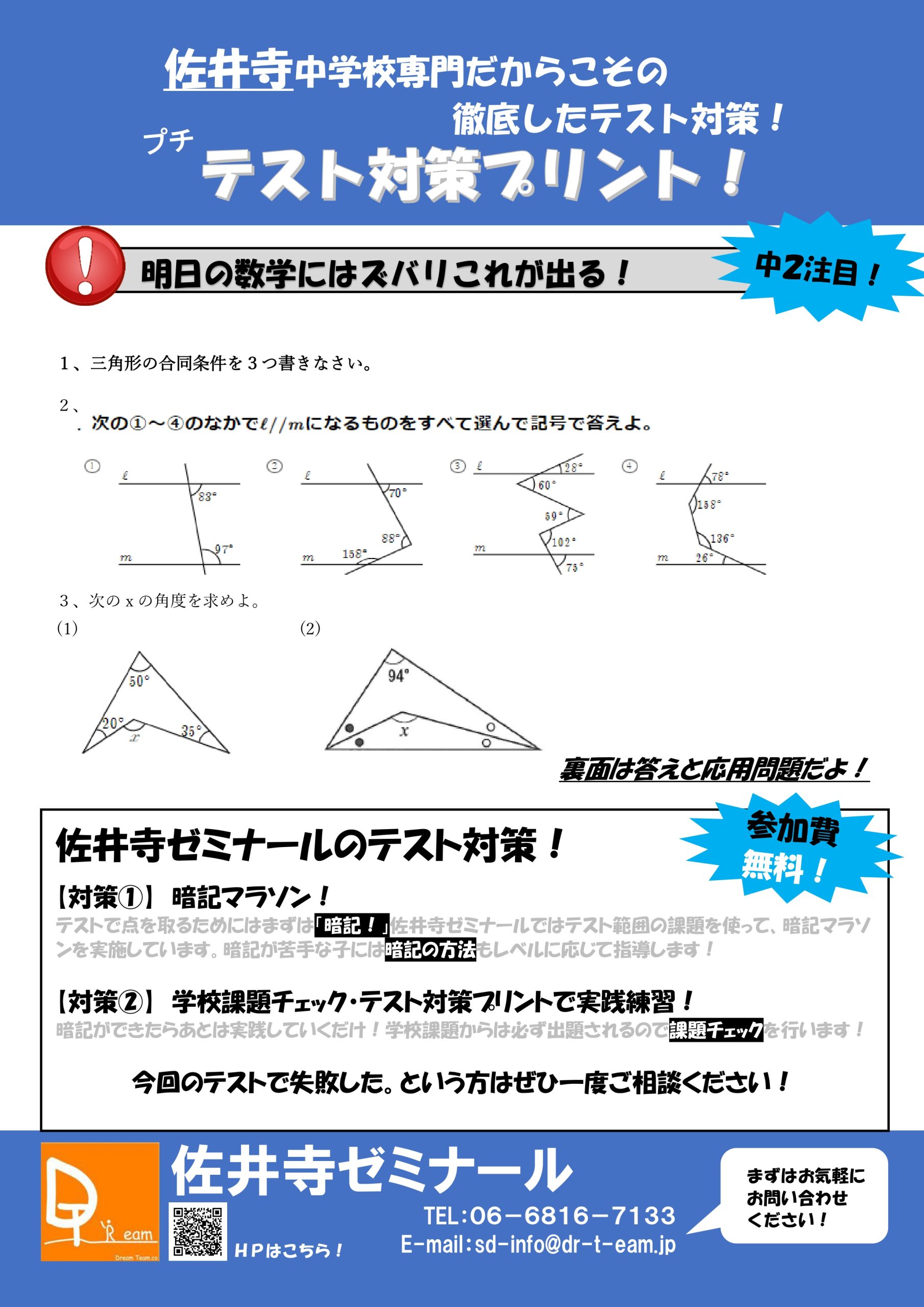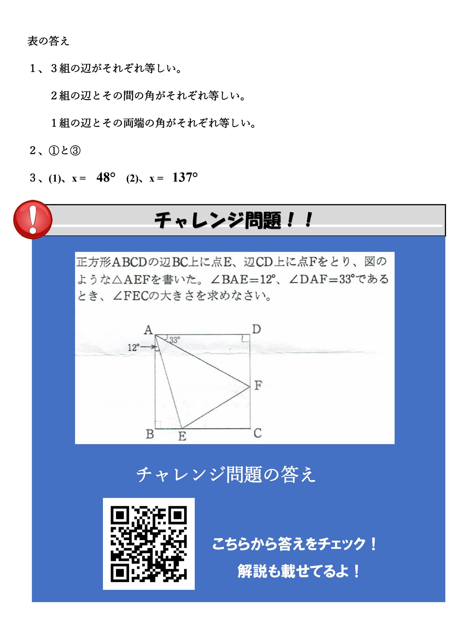 「明日の数学にはズバリこれが出る!!」を中2生用に作ってみました。