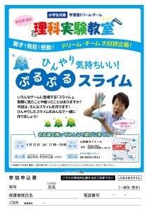 校舎予定 山田東ゼミナール 【山田東ゼミナール】理科実験のお知らせ 2024年4月24日 こんにちは!山田東ゼミナールの岡田です! 5月22日(水)17時~18時で理科実験教室を開催します! 今回は・・・・スライム作りをします! みなさん遊びに来てください! 山田東ゼミナール 岡田 06-6876-2511