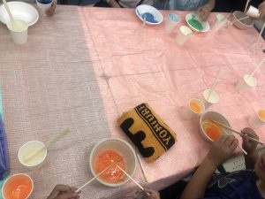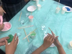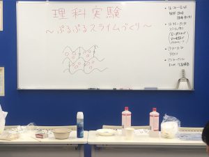 上記の写真のように各自好きな色、好きな硬さでスライムを作っていました!
