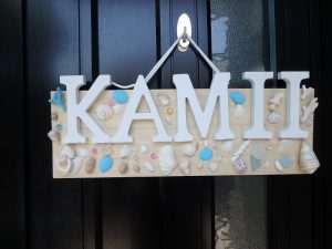 お昼までにやりたいことは、自宅の表札作りです。100円ショップで調達しておいた木の板、アルファベットの小物、今までに行った沖縄などの海で拾ってきた貝殻、ホットボンドを使って可愛いものを作ろうと思っていました。