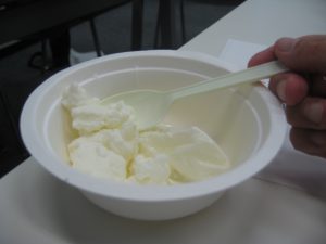 牛乳と生クリーム・砂糖をまぜて、氷と食塩を使い、