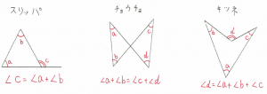 図形の問題を解く上で、これらの合言葉は必要不可欠となってきます。