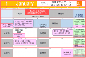 【武庫東ゼミ】1月校舎予定
