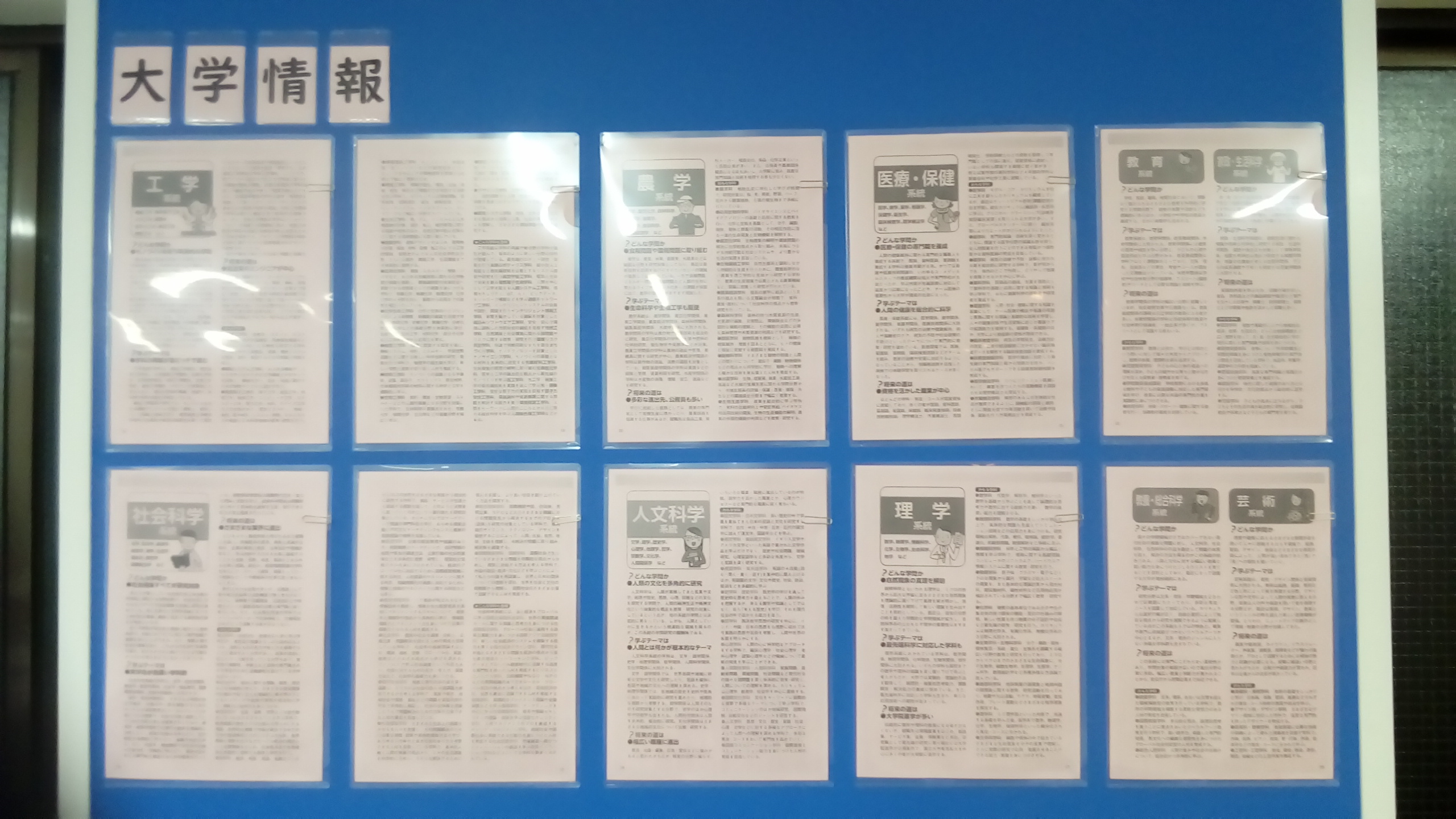 つぶやき 【南千里ゼミ】ブースが届きました! 2020年3月31日 こんにちは! 南千里ゼミナールです! 高校部、お待たせしました! 高校生優先の自習ブースです! 立派なブースが設置されました! 高校の勉強も捗りそうです! 大学受験向けの掲示を作りました! 大学受験では学部も大事です! 進路面談も学習サポートも 是非とも、お任せください! 南千里ゼミナール 竹見台中・吹田第一中でも お気軽にご相談ください!