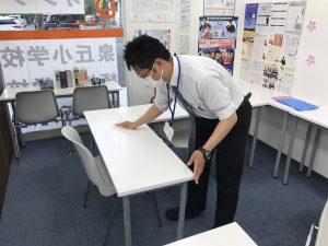 普段は1回の授業が終わるごとにテーブルを消毒しています。